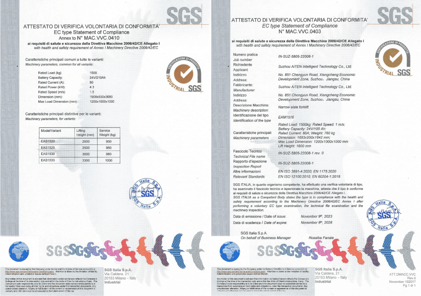 3. CE 标志(欧盟): 确保符合机械指令,强调对繁忙仓库等动态环境的风险评估,在这些环境中,叉车与行人和手动设备相互作用。为满足欧洲市场的法规要求,MILE米乐产品经过严格审核,为包括 MP10AM1516AE15、AS15 和其他产品在内的 AGV 产品获得了欧盟 CE 证书。